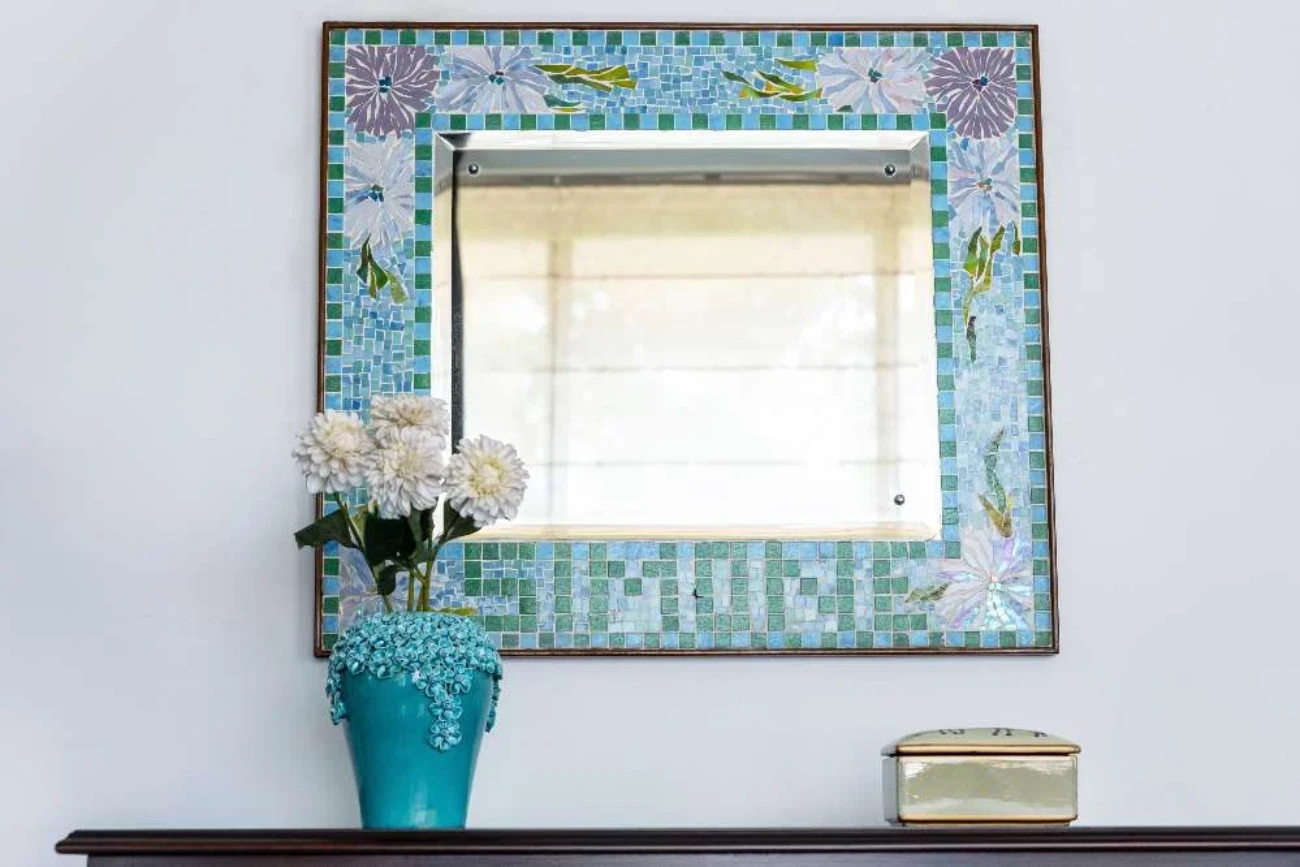 Lady J Mirror Frames are only made-to-order, as a result of their individualistic nature. Customise your easy-to-hang piece of art with our range of endless bordered designs featuring ornate florals, linear and even personalised monograms or names. Hardware for backlighting is included for stained-glass mirror frames, furnishing your space with dramatic luminance! Discover the diversity in our tiled and illuminated, Lady J Mirror Frames.